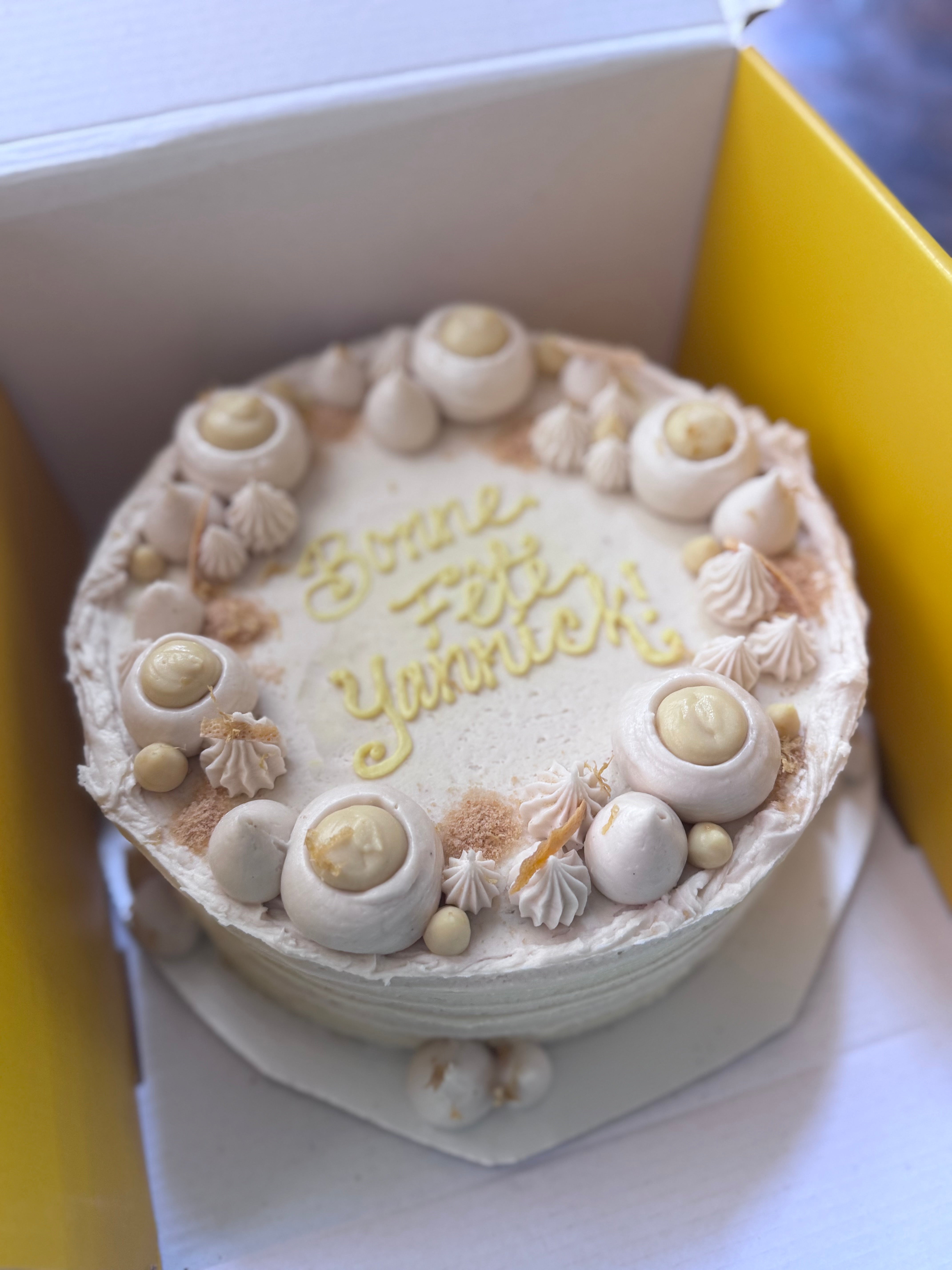 If you are in a pinch, we offer frozen 2-layer 6" cakes and 4" cakes at the shop for same day order/pick up. View our available options on our online menu on Toast Take Out.